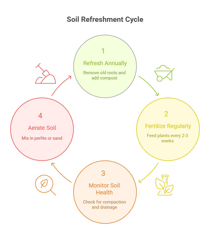 Healthy soil is the engine of container gardening — refreshing, feeding, and aerating it keeps your plants growing strong season after season.